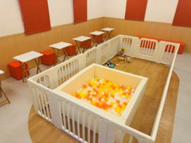 【内容】幼稚園の給食やお菓子を召し上がっていただきながら、幼稚園教諭やご参加の保護者様と楽しくお話ができる機会を提供致します。お子様同伴の場合は、保護者様の前に設置したボールプールや楽しいおもちゃであそんでいただけます。